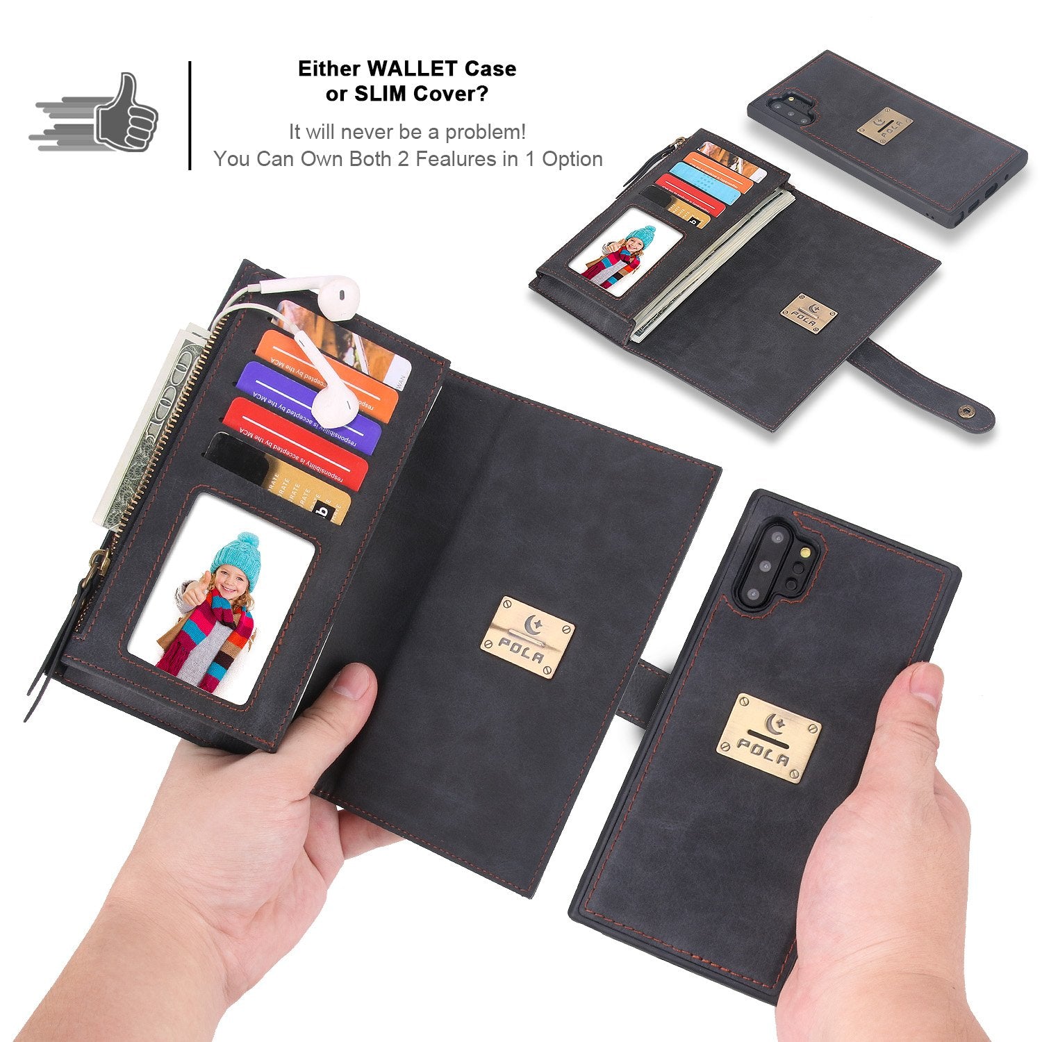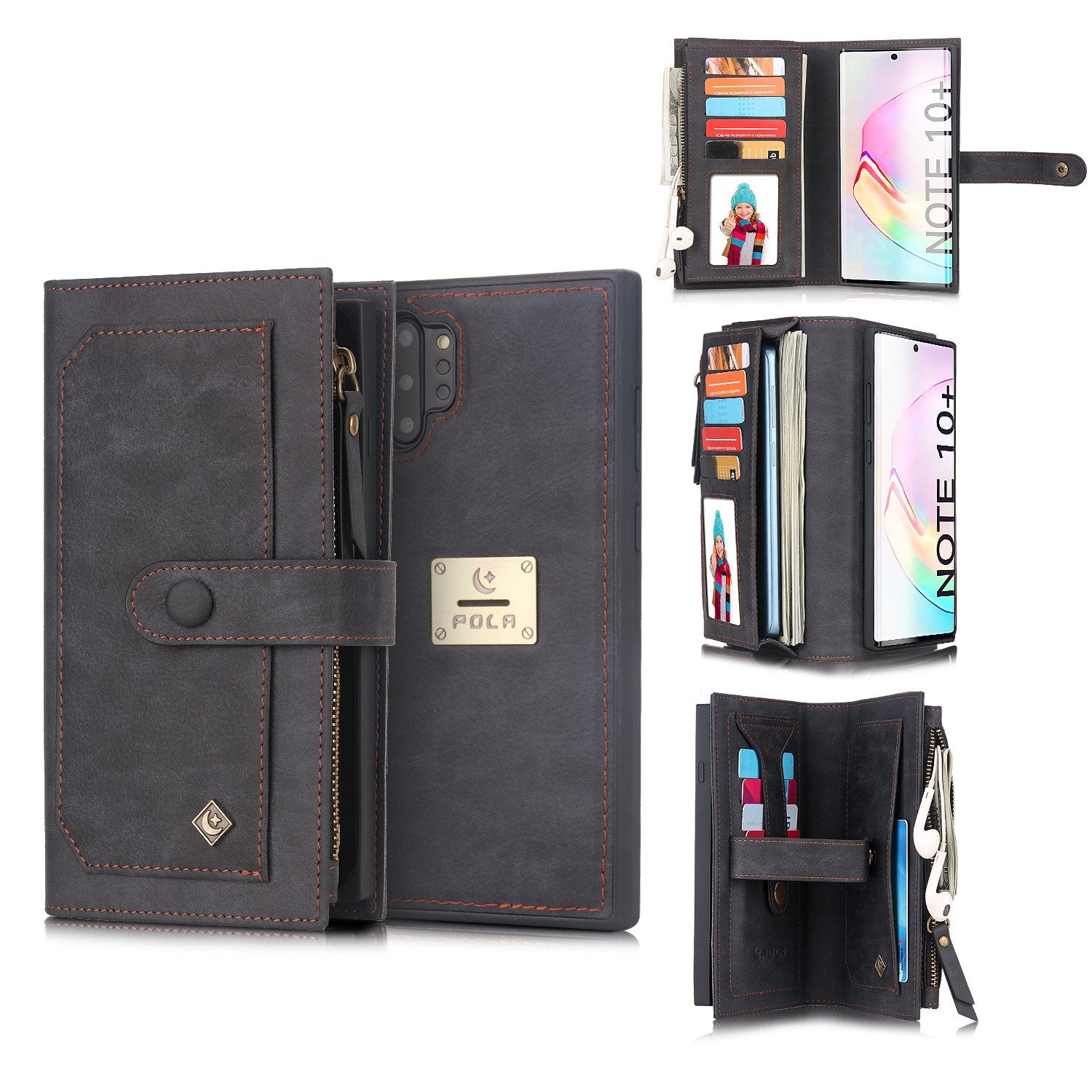 POLA Samsung Wallet Case , Leather Zipper Purse Detachable Magnetic 10 Card Slots Money Pocket Clutch Protection Back Cases Cover
