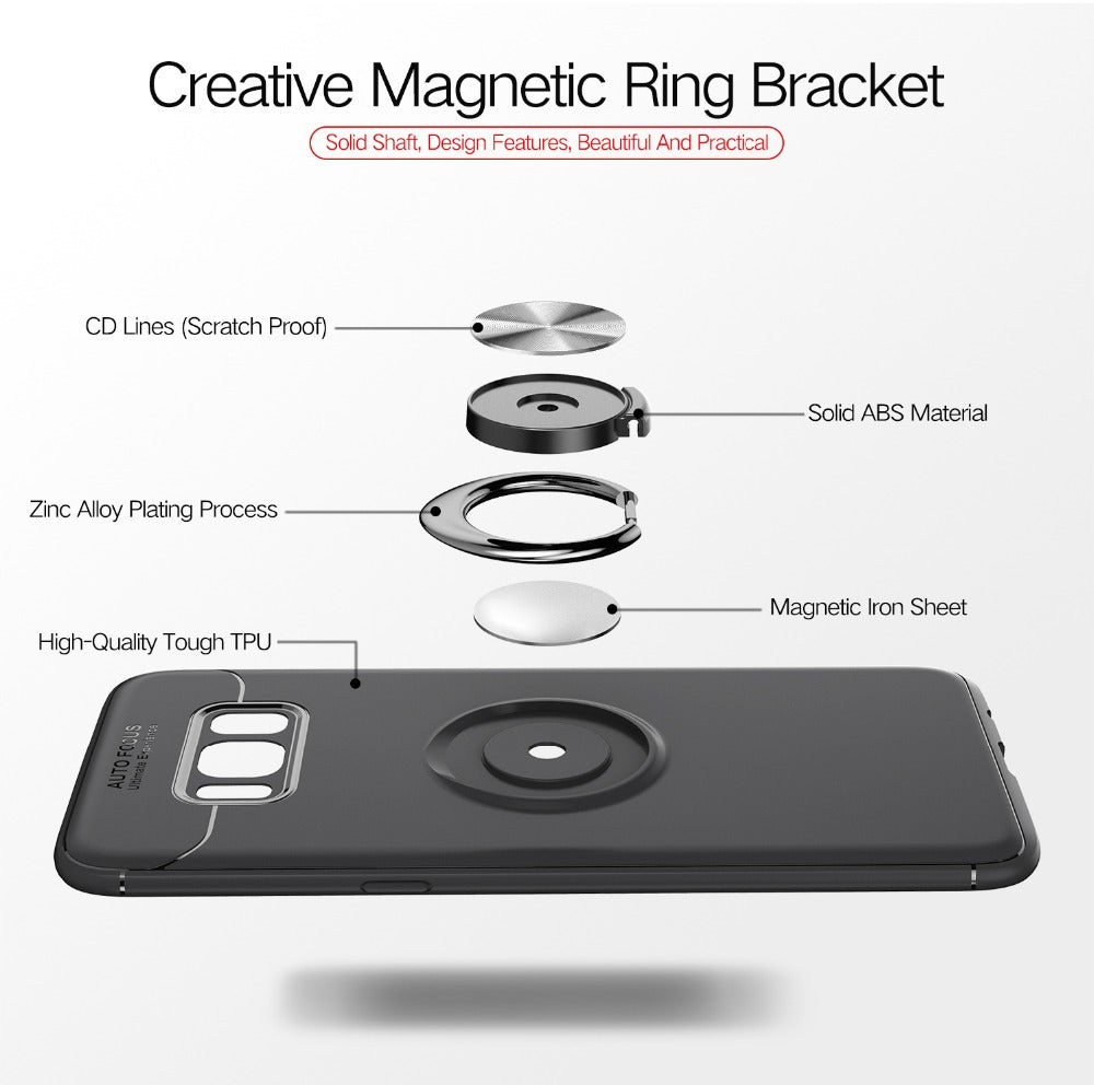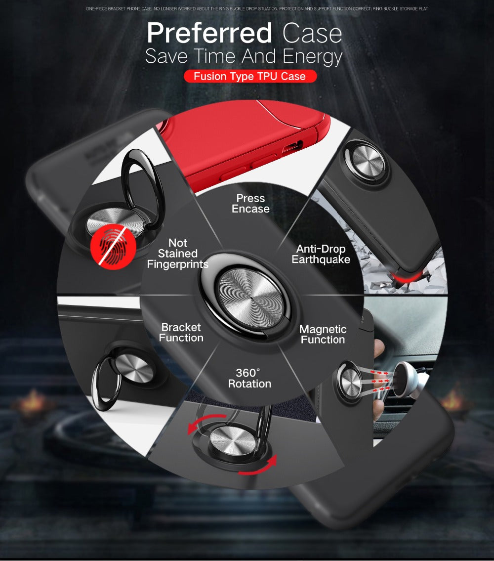 Features: Car Holder Stand Magnetic Bracket Finger Ring TPU Case