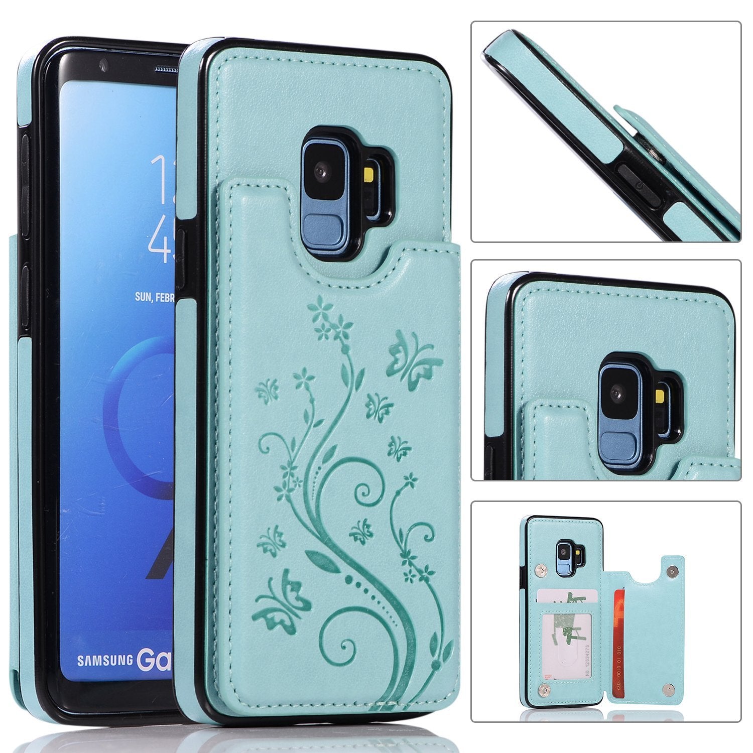 Hülle für Geldbörse mit Kartenhalter, Vaburs Prägung Schmetterling Premium PU-Leder Doppelte Magnetknöpfe Flip Stoßfeste Schutzhülle für Samsung Galaxy S7/S7 Edge