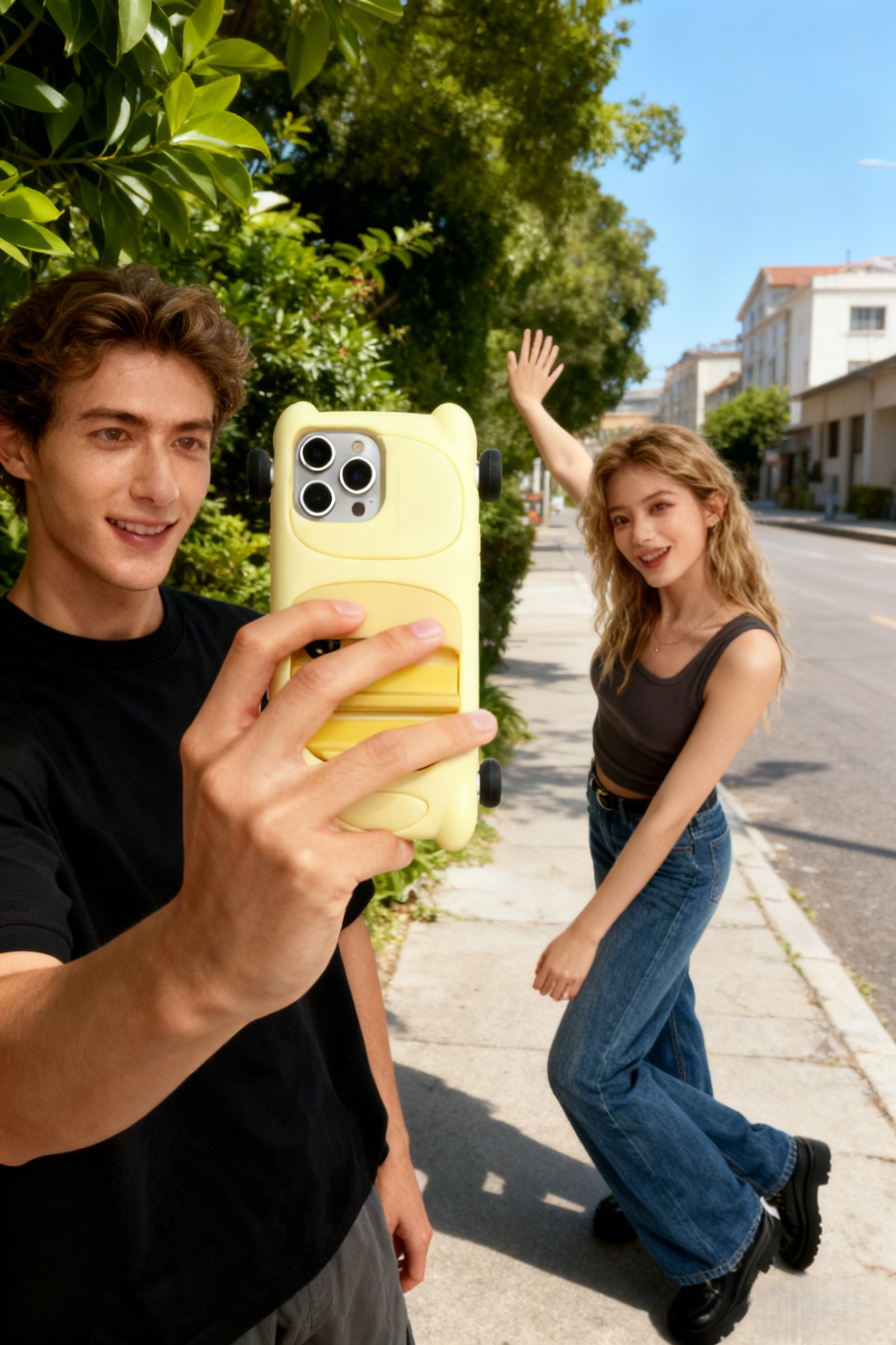 - Selfie-Requisit: Halten Sie die "kleine gelbe Auto"-Hülle in Ihren Selfies für sofort fröhliche, lässige Fotos.