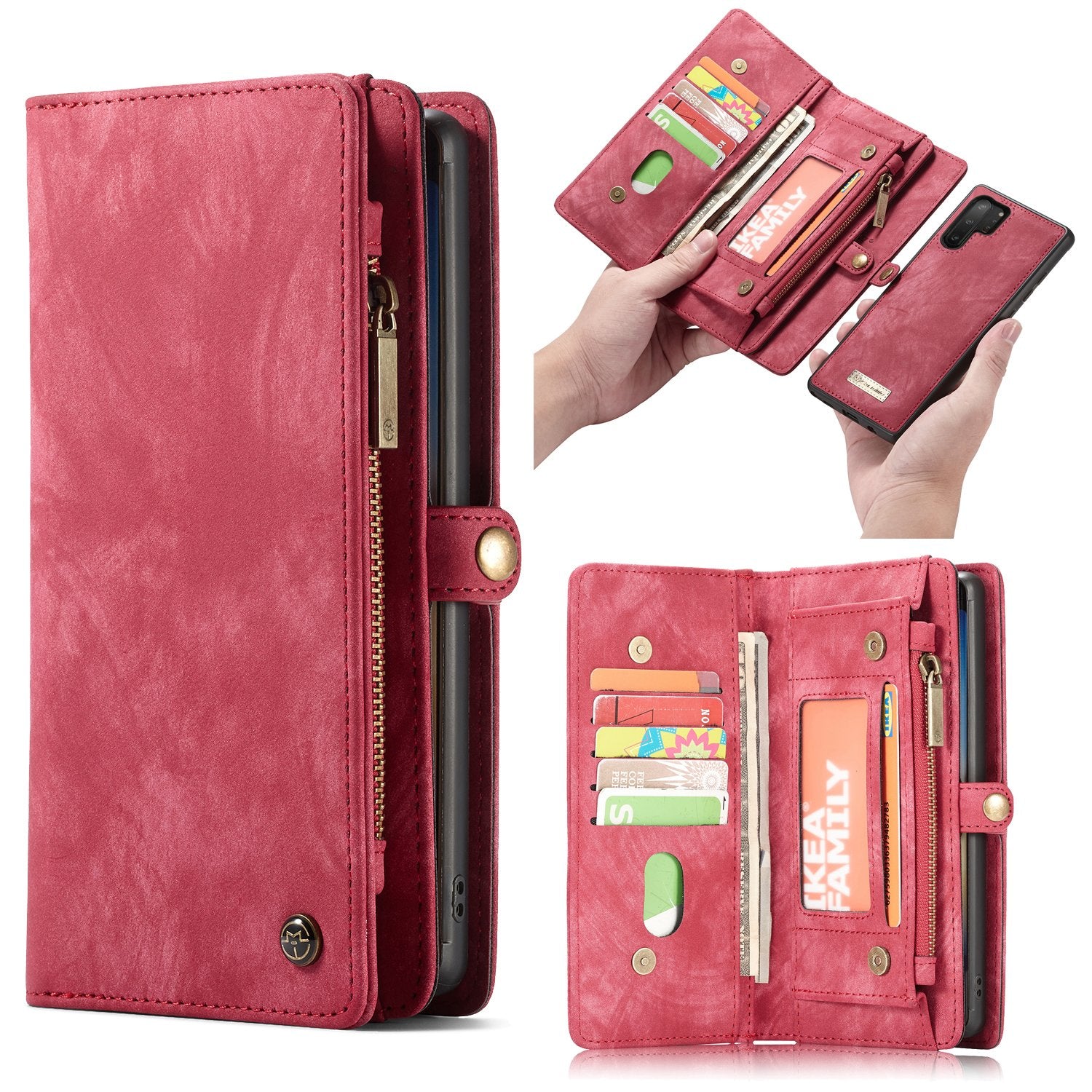1) Abnehmbares 2-in-1 Geldbörsen-Lederetui